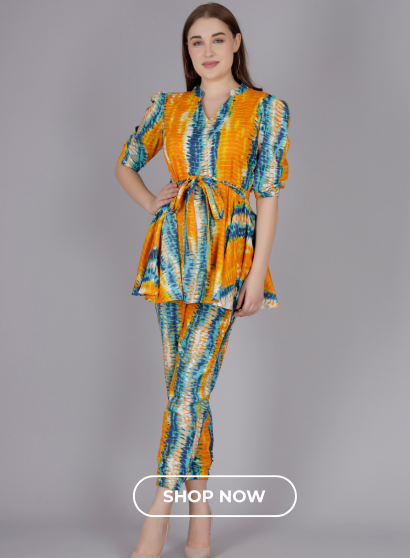 The eye-catching Rajasthani print Co-Ord-Set adds a pop of color and a touch ...